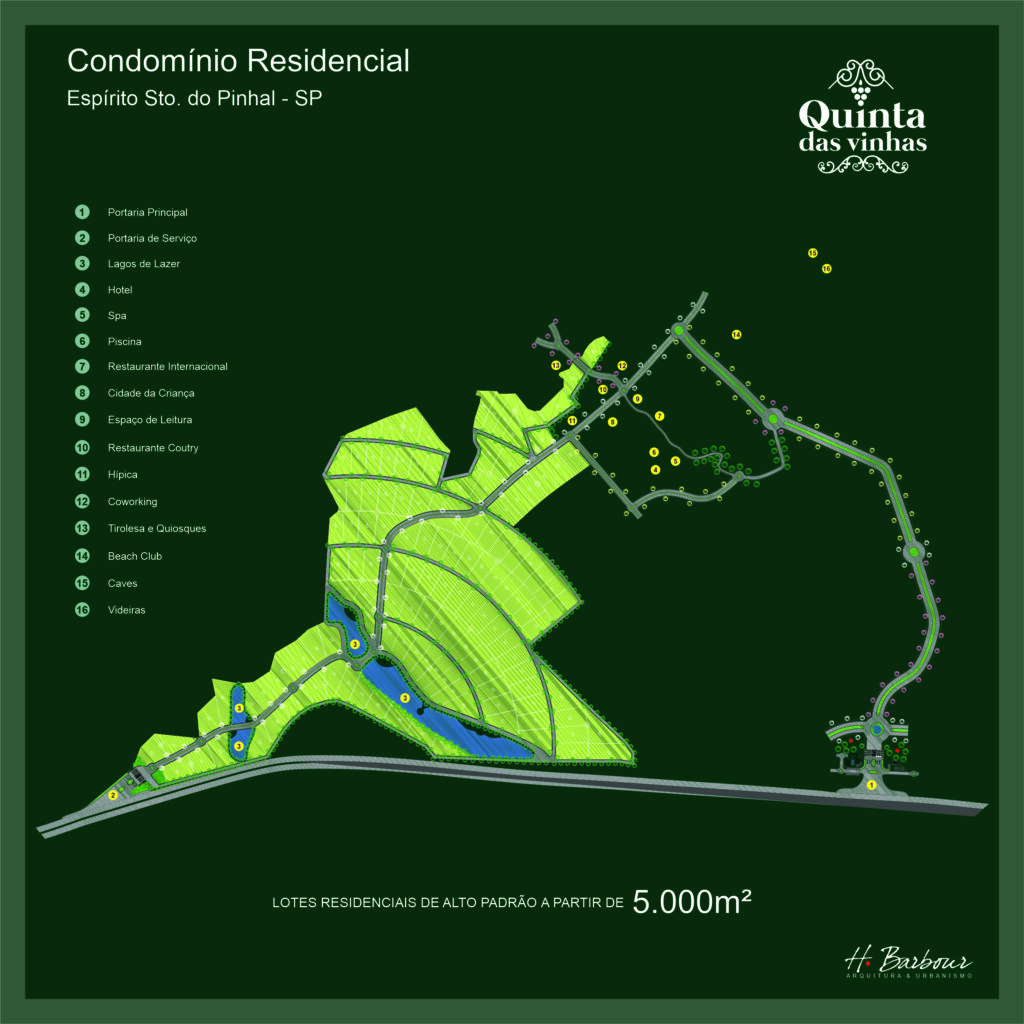 A Quinta das Vinhas é um condomínio residencial de alto padrão, projetado para ser um refúgio exclusivo aos que buscam mais do que um endereço — um estilo de vida. Localizada em meio às paisagens encantadoras de Espírito Santo do Pinhal, a Quinta das Vinhas une o requinte da arquitetura contemporânea à tradição do universo do vinho, criando uma experiência sensorial única.